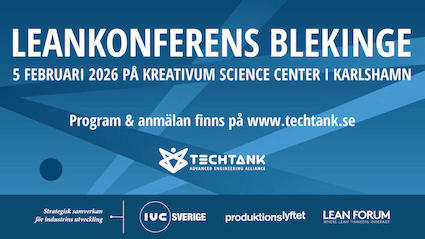 Den 13 februari är det åter dags för Leankonferens Blekinge som Techtank arrangerar tillsammans med Produktionslyftet och Lean Forum. Temat för årets konferens är Standardiserade arbetssätt & systematiskt förbättringsarbete, något som är kärnan i effektiva processer oavsett om det är i produktionen eller i administrationen. Medverkar gör bl a en av 2024 års finalister av Svenska Leanpriset, Kito Crosby i Växjö, och berättar om…